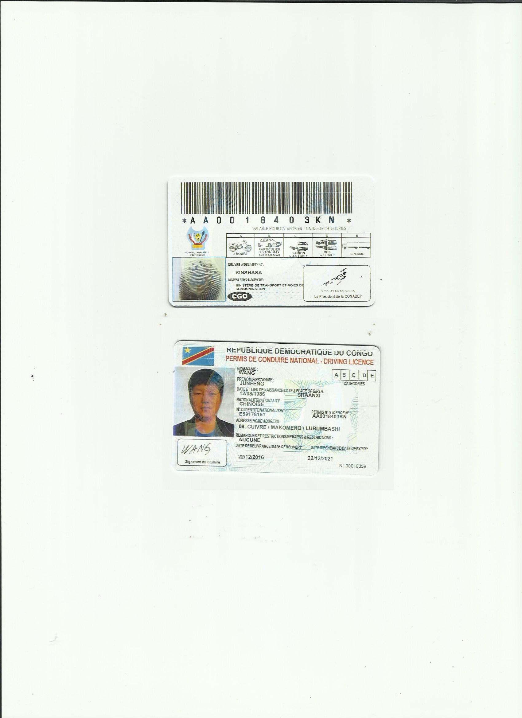 剛果金駕照翻譯模版-咸陽(yáng)市車管所認(rèn)可翻譯機(jī)構(gòu)-咸陽(yáng)市國(guó)外駕照翻譯