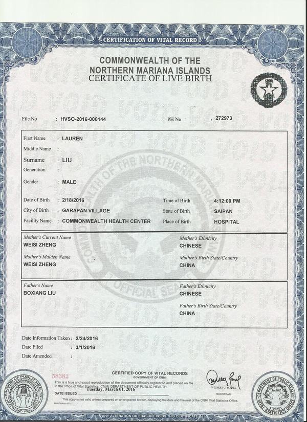 美國-北馬里亞納群島出生證明翻譯-咸陽公證處認(rèn)可翻譯機(jī)構(gòu)